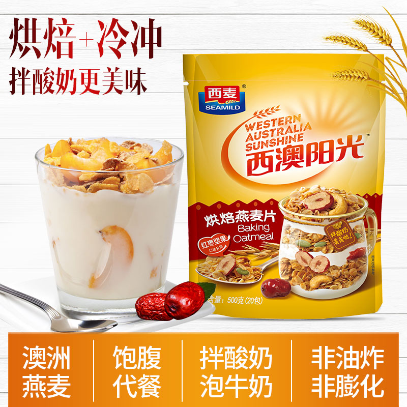 西麥 燕麥片 西澳陽(yáng)光 營(yíng)養早餐食品 酸奶好搭檔 即食 冷沖紅棗堅果烘焙干脆麥片500g (25-20小袋)獨立包裝-誠成商貿有限責任公司