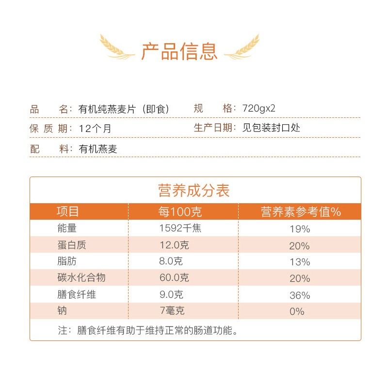 西麥 燕麥片 營(yíng)養早餐食品 牛奶好搭檔 即食 谷物代餐麥片 谷物代餐有機麥片720g
