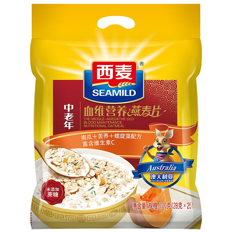西麥燕麥片中老年血維營(yíng)養麥片700g袋裝即食谷物營(yíng)養沖飲早餐未添加蔗糖(獨立小包裝) 中老年營(yíng)養700g袋-誠成商貿有限責任公司