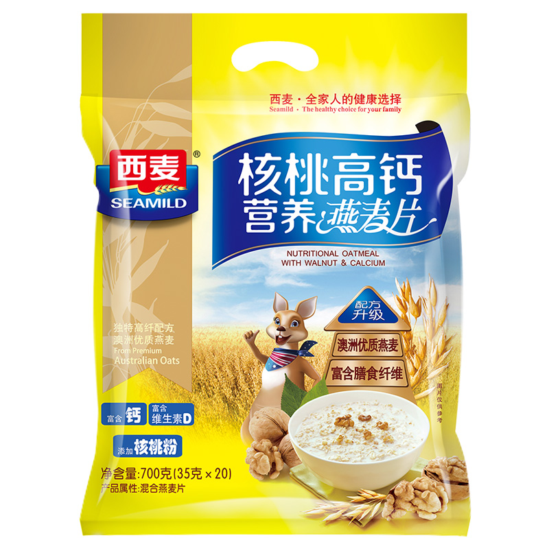 西麥 燕麥片 營(yíng)養早餐食品 牛奶好搭檔 核桃高鈣營(yíng)養 谷物代餐麥片700g(35g-20小袋)獨立包裝