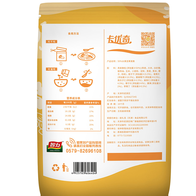 智力卡優(yōu)奇水果堅果麥脆300g免煮學(xué)生營(yíng)養早餐即食干吃燕麥代餐-誠成商貿有限責任公司