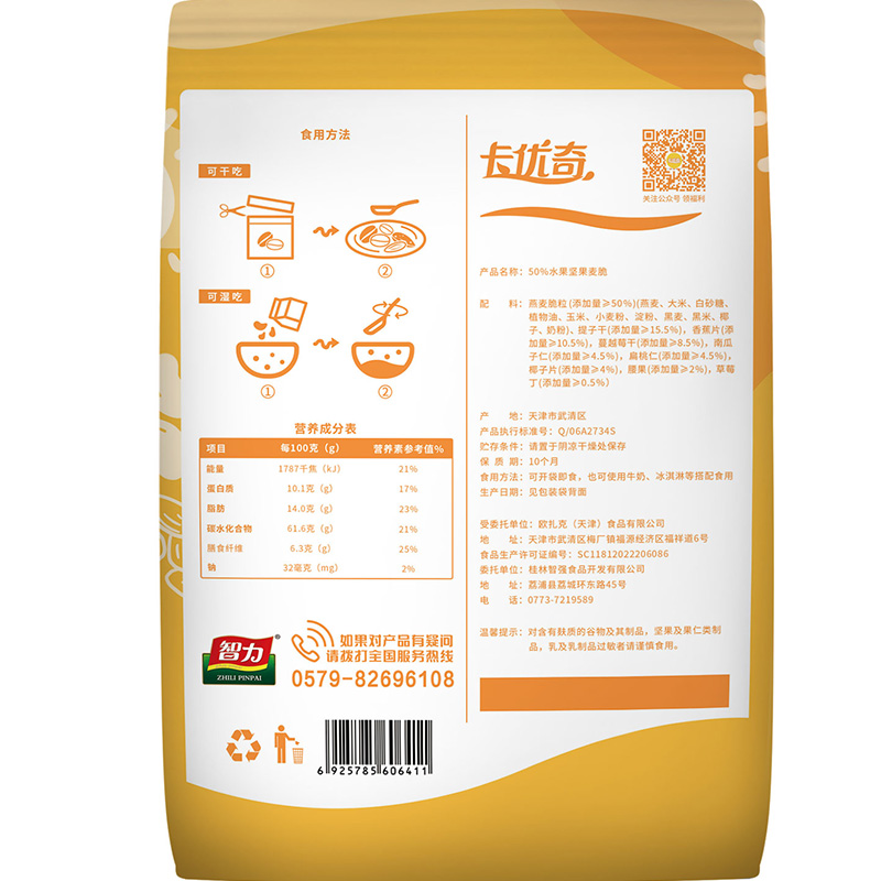 智力卡優(yōu)奇水果堅果麥脆520g免煮學(xué)生營(yíng)養早餐即食干吃燕麥代餐