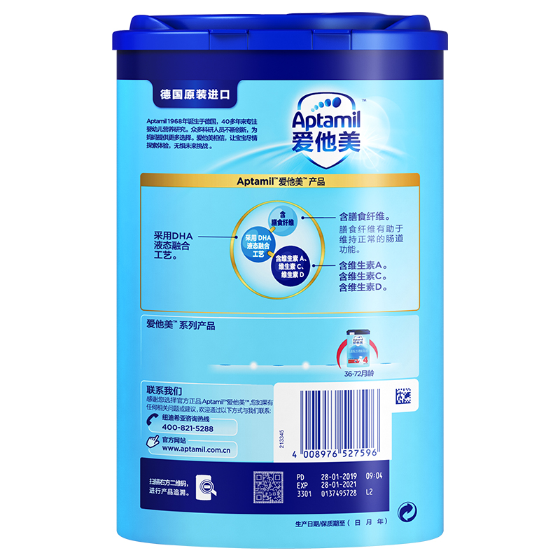 愛(ài)他美(Aptamil) 兒童配方奶粉(36–72月齡,4段)800g-誠成商貿有限責任公司