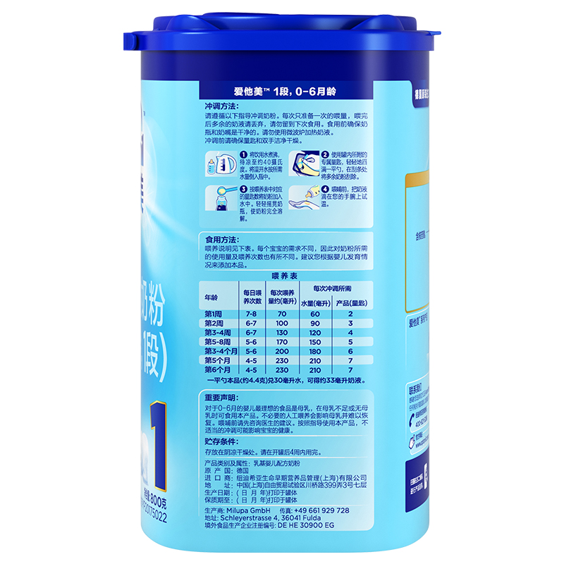 愛(ài)他美(Aptamil) 嬰兒配方奶粉(0–6月齡,1段) 800g-誠成商貿有限責任公司