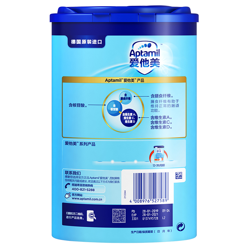 愛(ài)他美(Aptamil) 幼兒配方奶粉(12–36月齡,3段)800g-誠成商貿有限責任公司