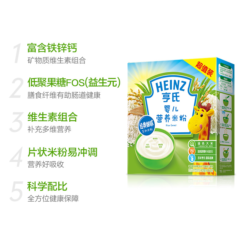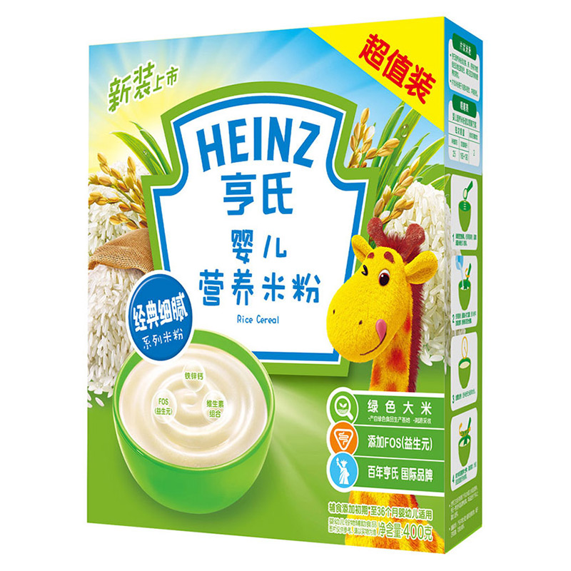 亨氏 (Heinz) 1段 嬰幼兒輔食 含益生元 寶寶米粉米糊 400g (輔食添加初期-36個(gè)月適用)