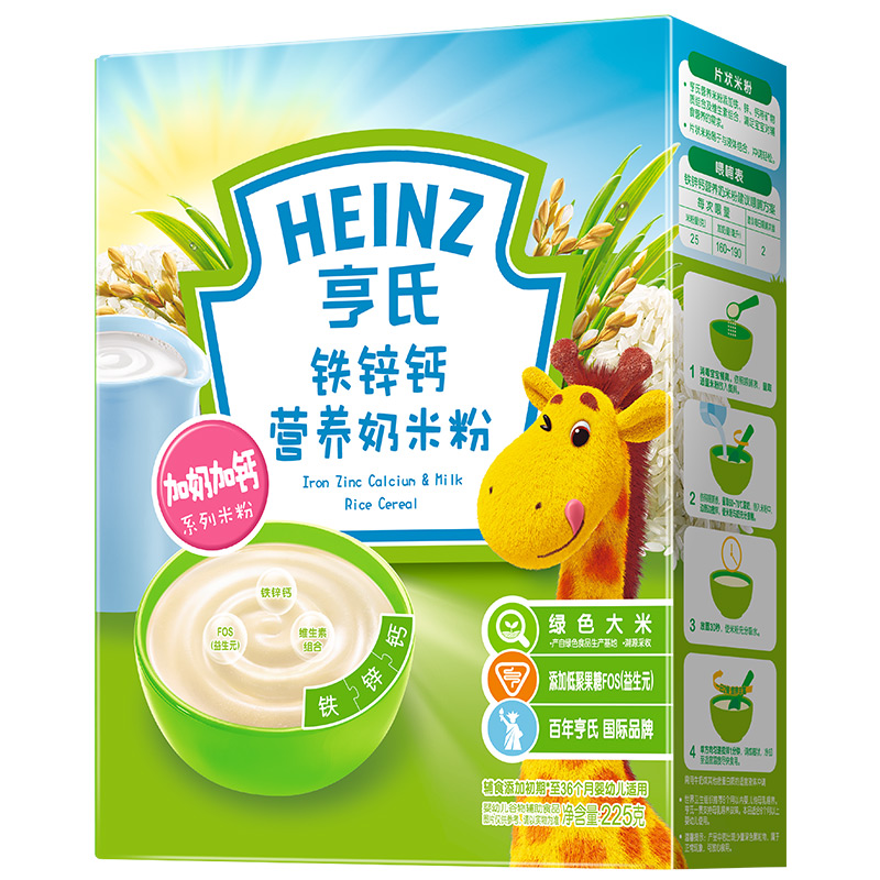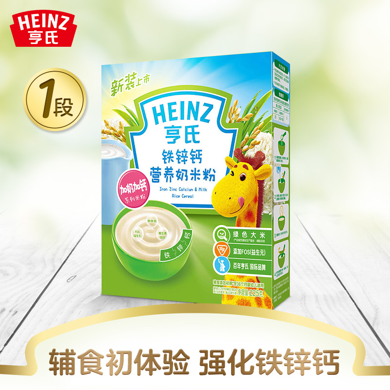亨氏 (Heinz) 1段 嬰幼兒輔食 強化鐵鋅鈣 寶寶米粉米糊 225g (輔食添加初期-36個(gè)月適用)