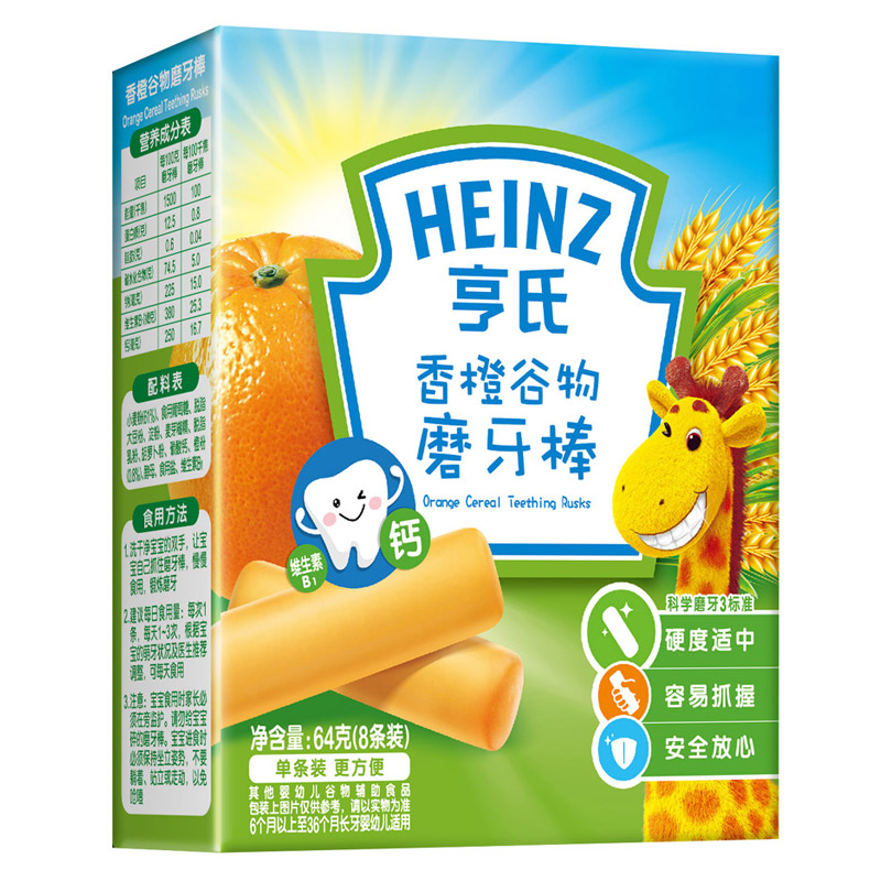 亨氏 (Heinz)1段 嬰幼兒輔食 香橙 寶寶零食磨牙棒64g(輔食添加初期-36個(gè)月適用)