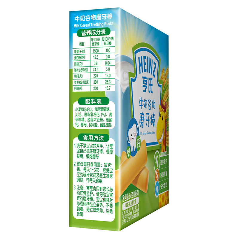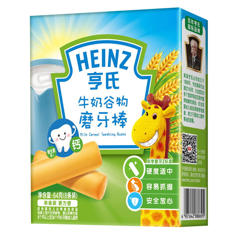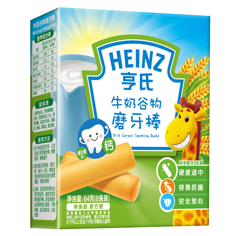 亨氏 (Heinz) 1段 嬰幼兒輔食 牛奶 寶寶零食磨牙棒64g(輔食添加初期-36個(gè)月適用)-誠成商貿有限責任公司