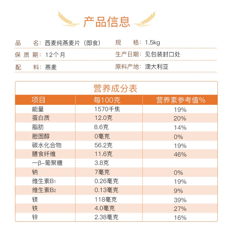 西麥 燕麥片 無(wú)添加蔗糖 營(yíng)養早餐食品牛奶好搭檔 即食 超值谷物代餐麥片1500g袋裝-誠成商貿有限責任公司